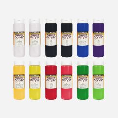 • 12 × 500 ml acrylic paints in assorted colours