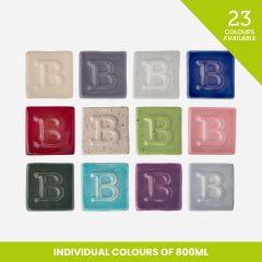 - At 1150°C the glaze is vibrant in colour with a semi-transparent surface. Apply two glazing coats.